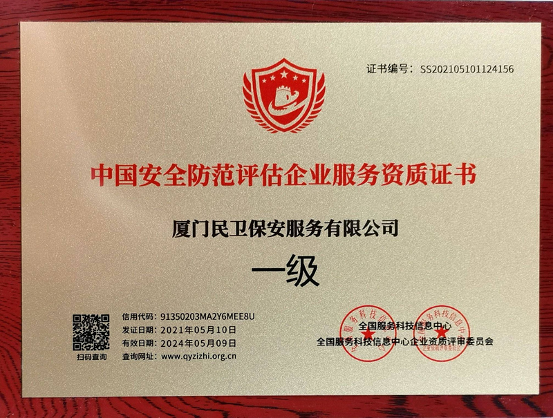 中國(guó)安全防范評(píng)估企業(yè)服務(wù)資質(zhì)證書